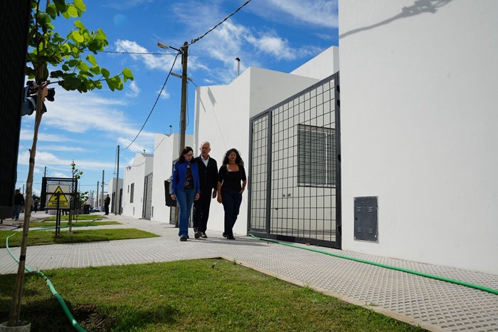 Silvina Batakis y Julio Alak mantuvieron una reunión de trabajo con sus equipos y recorrieron la obra para definir los últimos pasos antes de la entrega de las casas