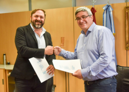Larroque encabezó el anuncio, rubricado en el marco de la inauguración del SUM de la Comunidad. Se financiará a la Asociación Civil con 50 millones de pesos para proveer los 100 lotes a construir.