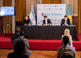 Axel Kicillof, junto a Agusto Costa y Juan Cuattromo anunciaron un paquete de medidas para acompañar a los distintos sectores económicos en el marco de la emergencia sanitaria