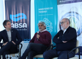 Se apunta a capacitar a las y los trabajadores en la prevención de riesgos laborales. Participaron el presidente de Aguas Bonaerenses S.A., Hugo Obed, y el titular del SOSBA, Julio Castro